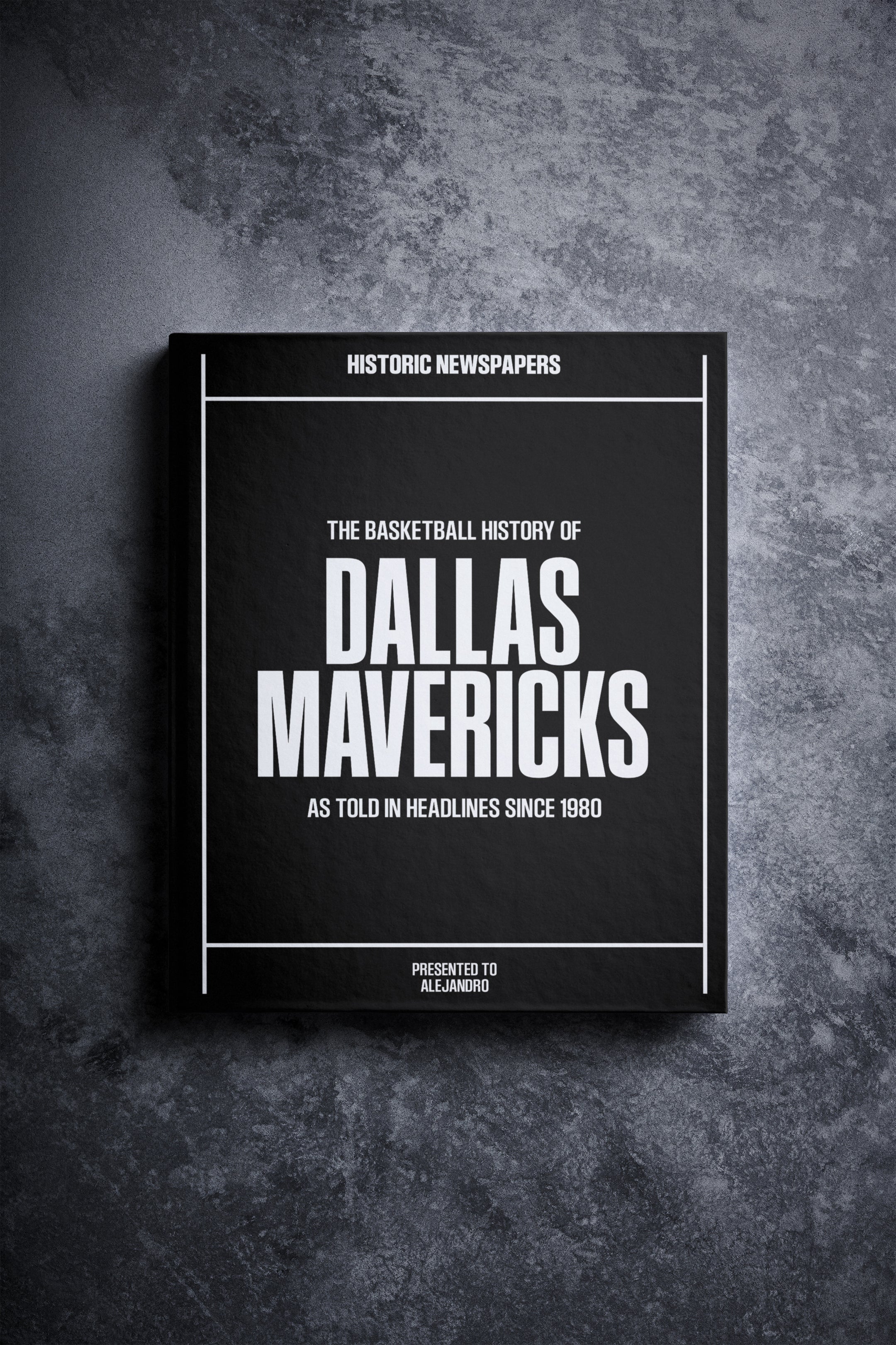 This coffee-table book features over 140 pages of authentic newspaper reports about The History of Dallas Mavericks Basketball. It comes with a choice of covers and the option to have the recipient’s name printed on the cover for free. This personalized basketball book honors the team’s legacy and is a top choice among Dallas Mavericks gifts.