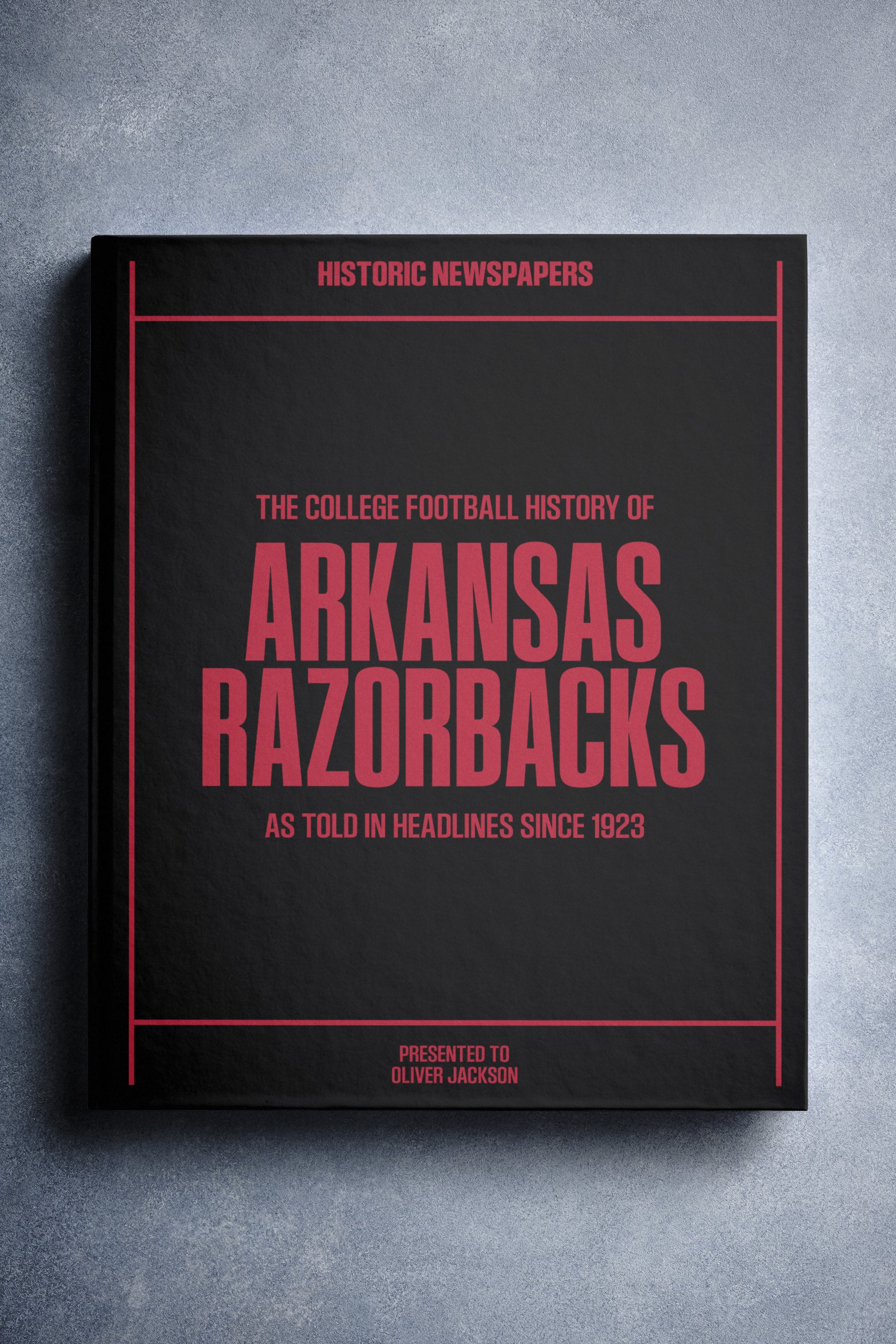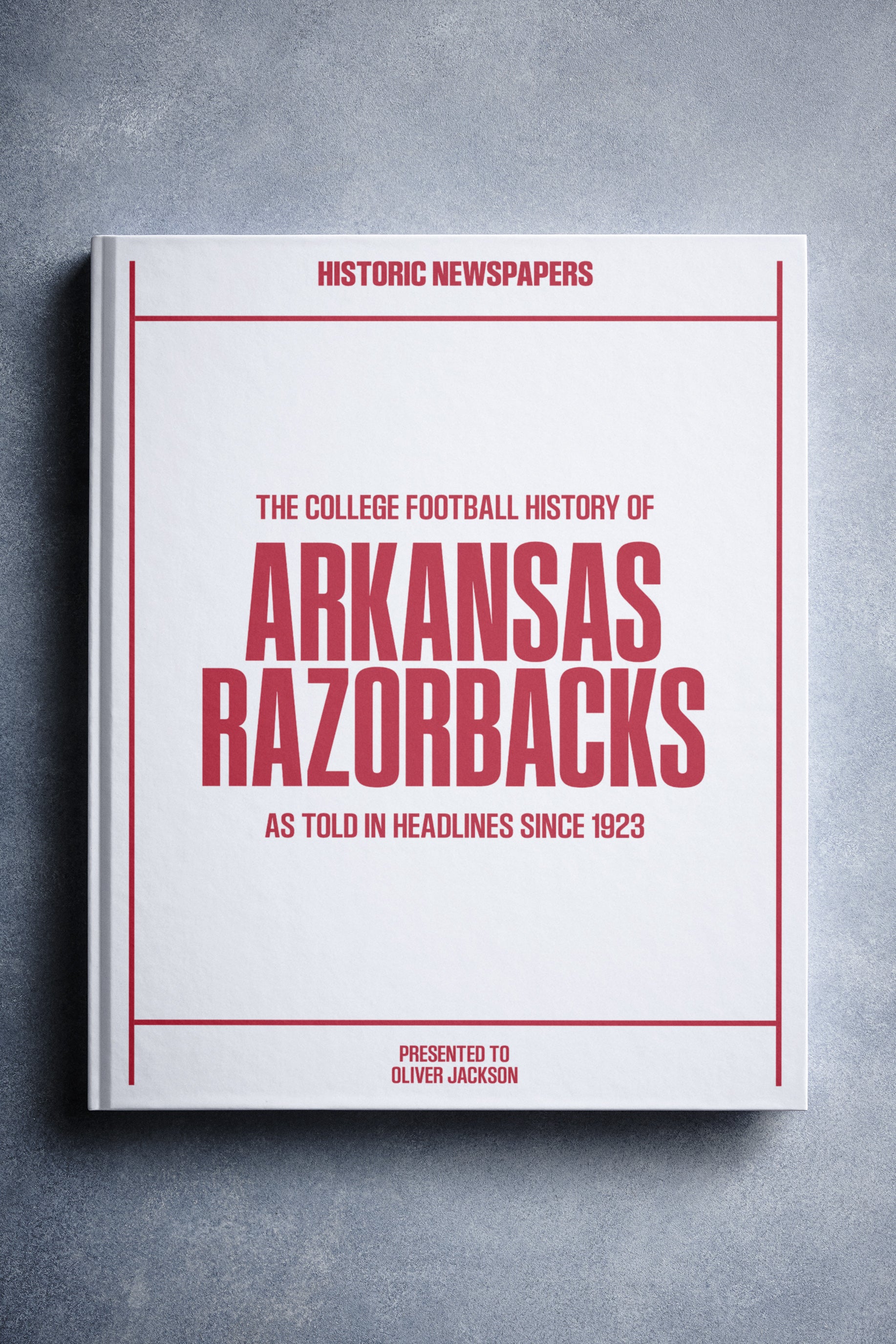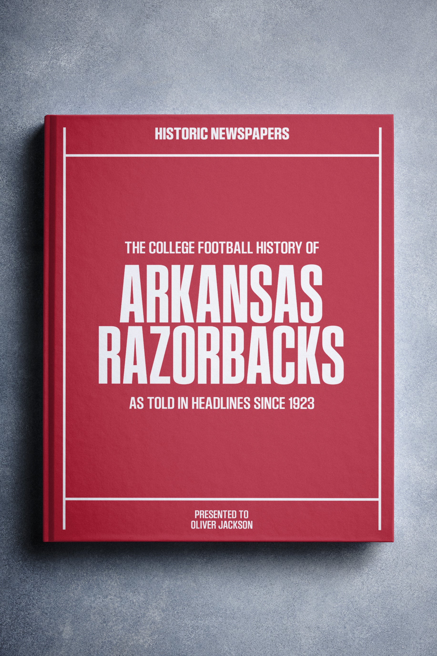 FOLLOW the story of the Arkansas Razorbacks from 1923 onwards, told through original newspaper reports as they were published at the time. From the memorable 31–6 victory over Oklahoma Sooners in the 1978 Orange Bowl, to the Miracle on Markham against LSU to clinch the SEC West title in 2002, and the incredible 71–63 win over Kentucky in seven overtimes in 2003. Choose from a range of book covers and personalize your book with a name and message to create a lasting keepsake. A piece of Razorbacks history to gift, share, and relive.