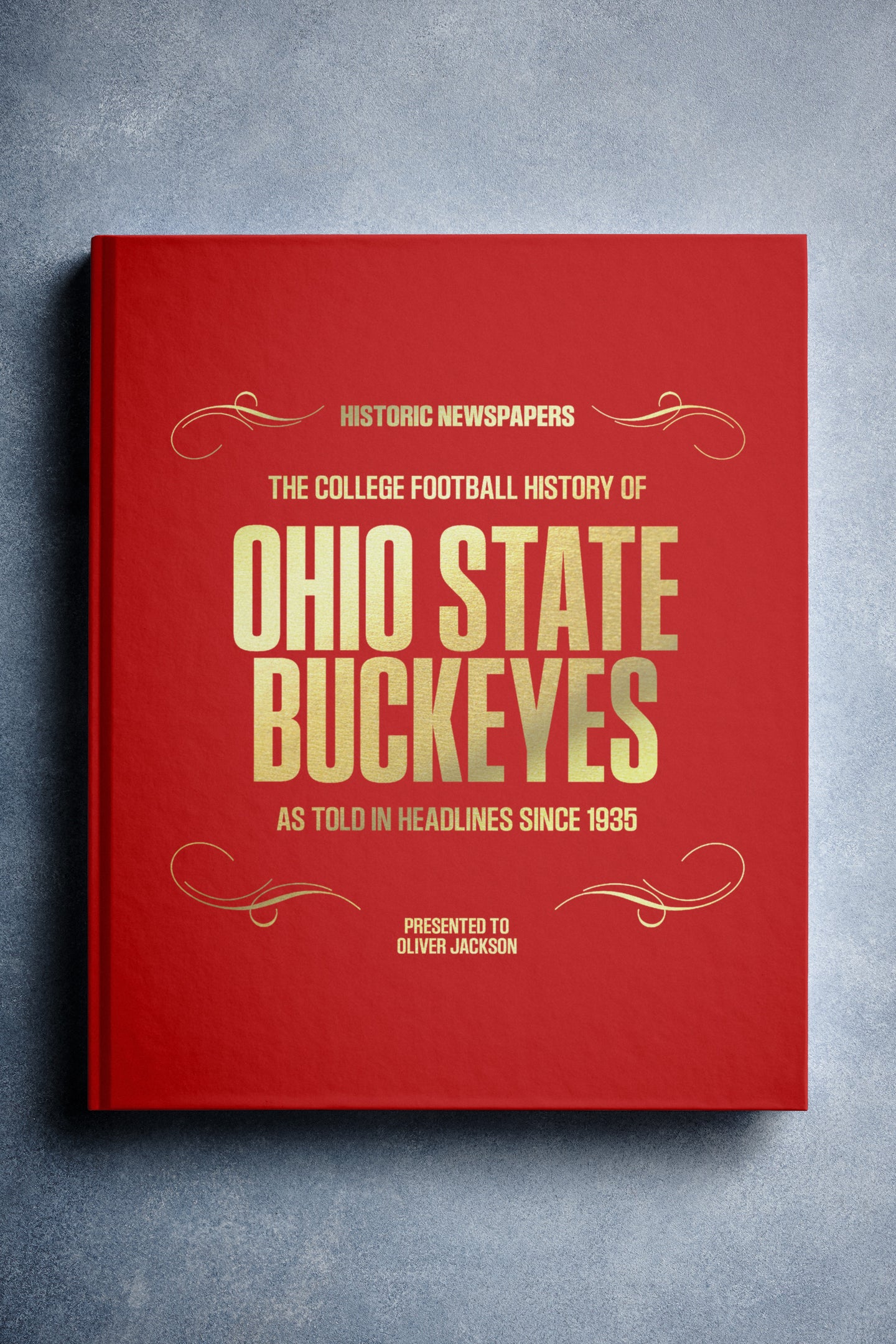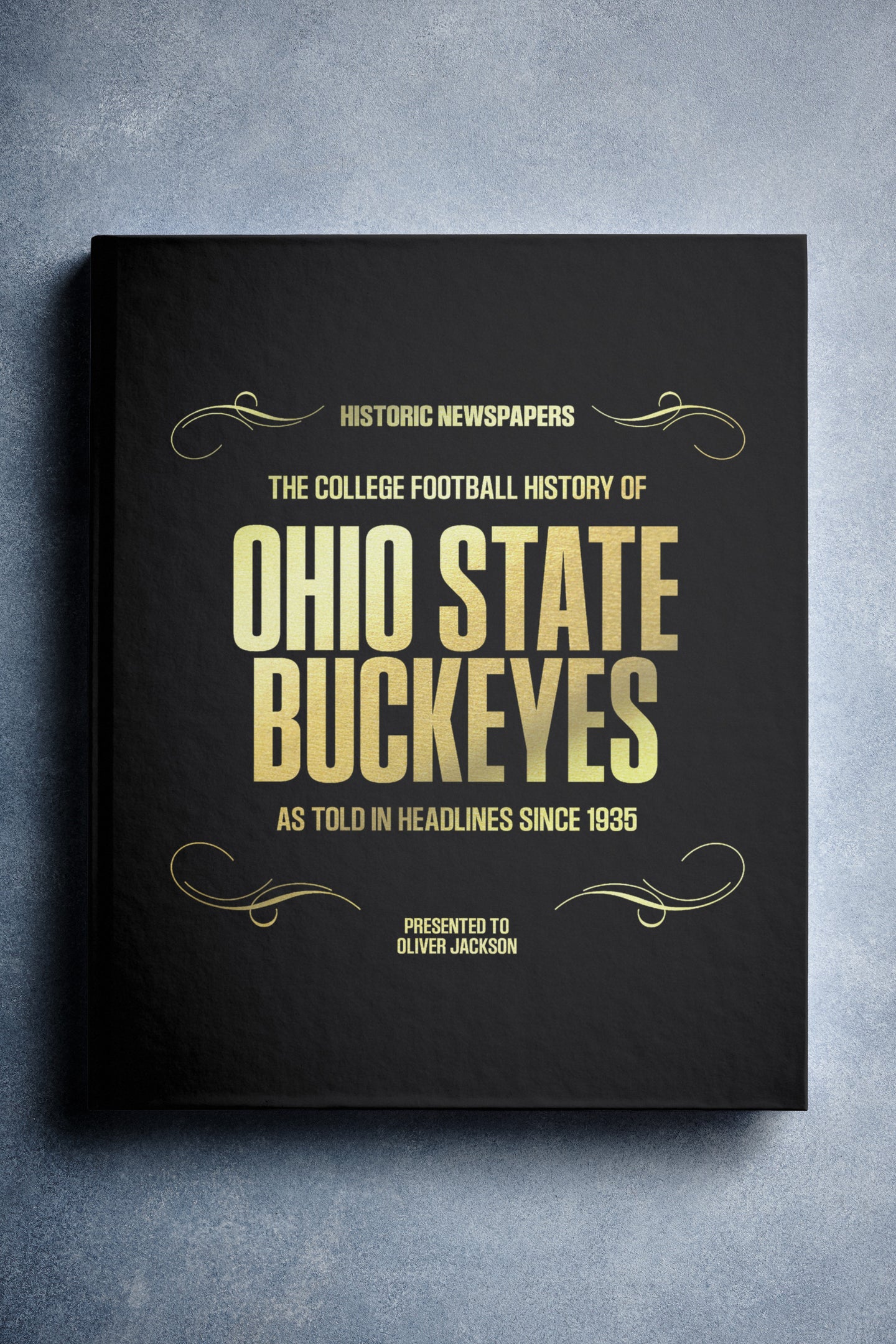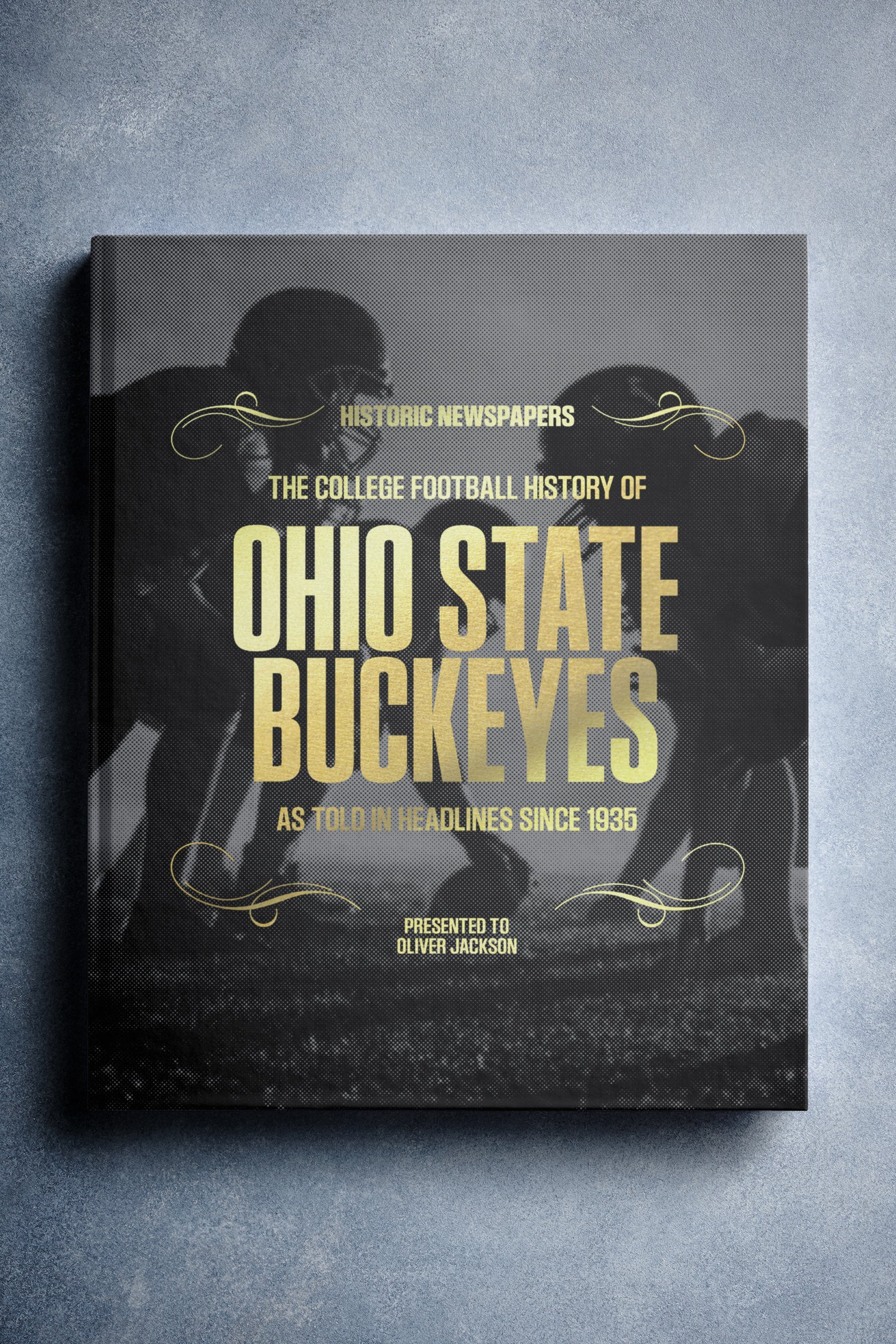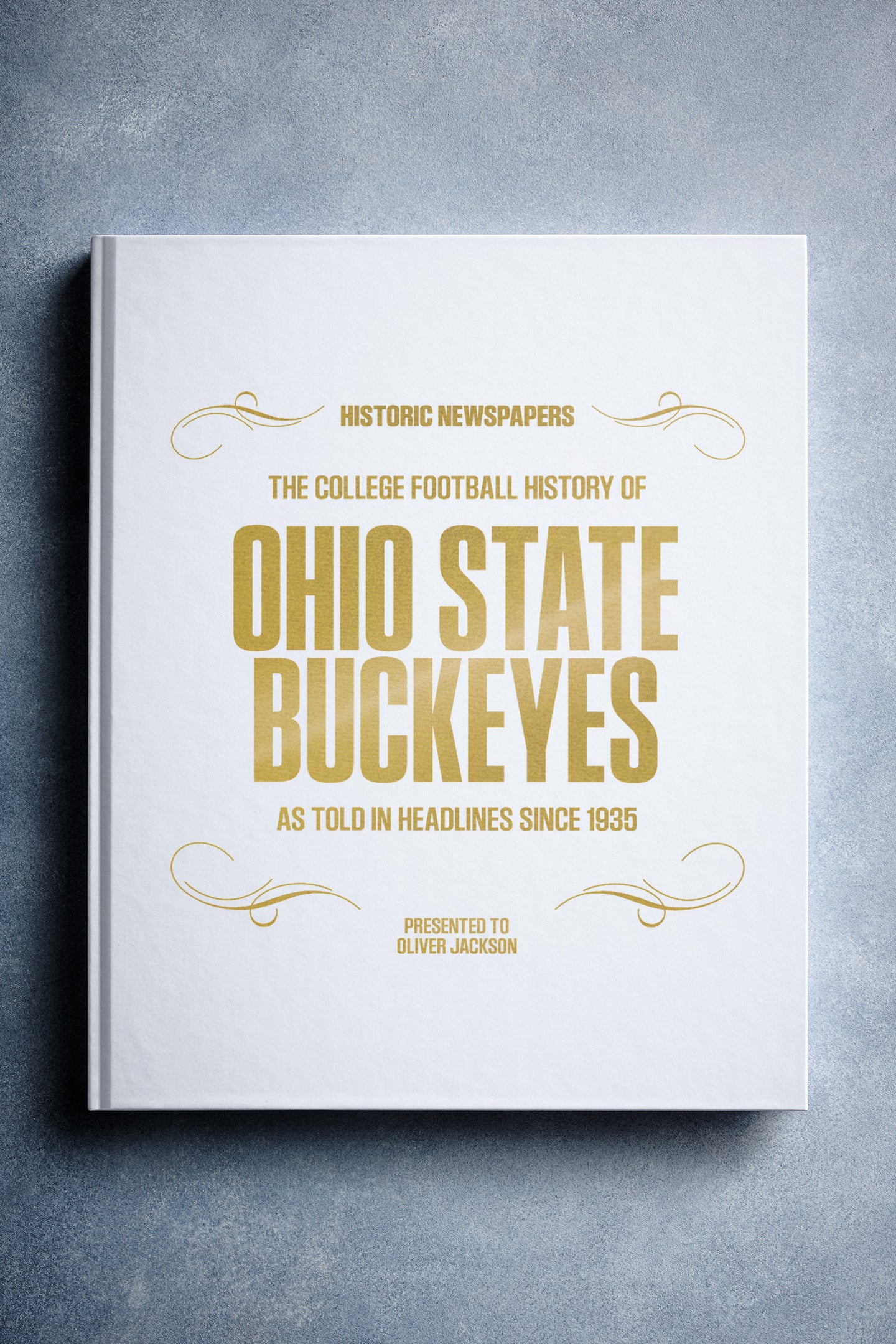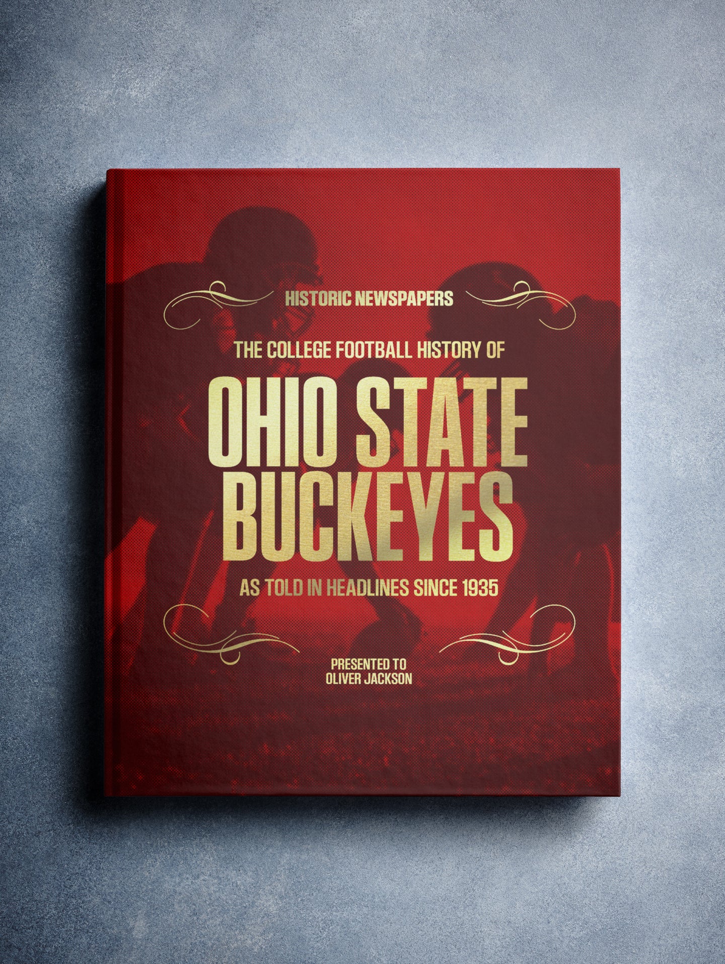 This coffee-table book features 160 pages of authentic newspaper reports about The History of Ohio State Buckeyes College Football. It comes with a choice of covers and the option to have the recipient’s name printed on the cover for free.