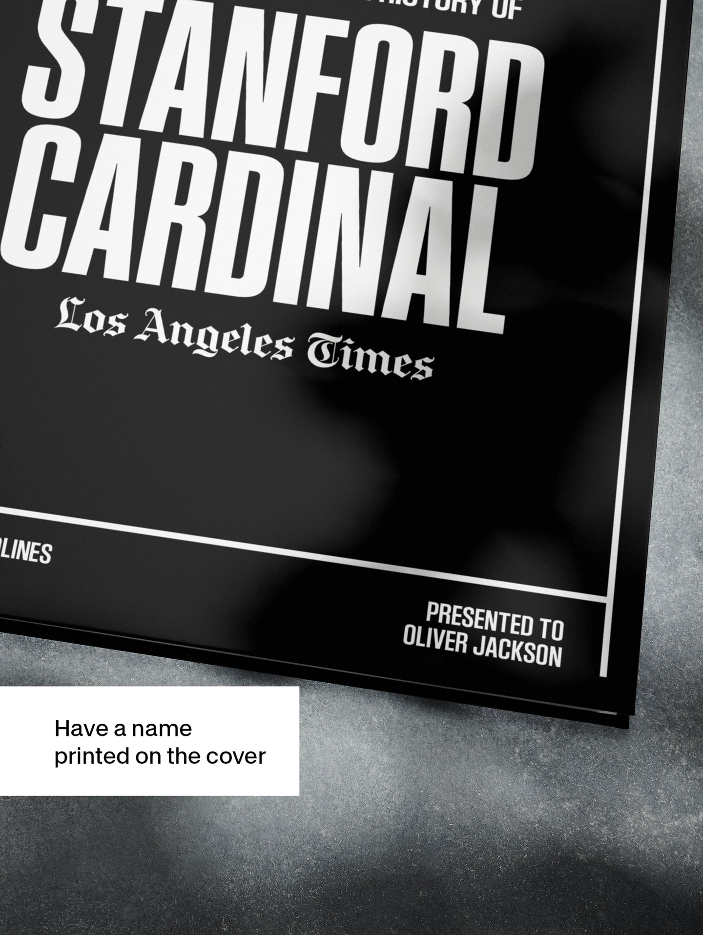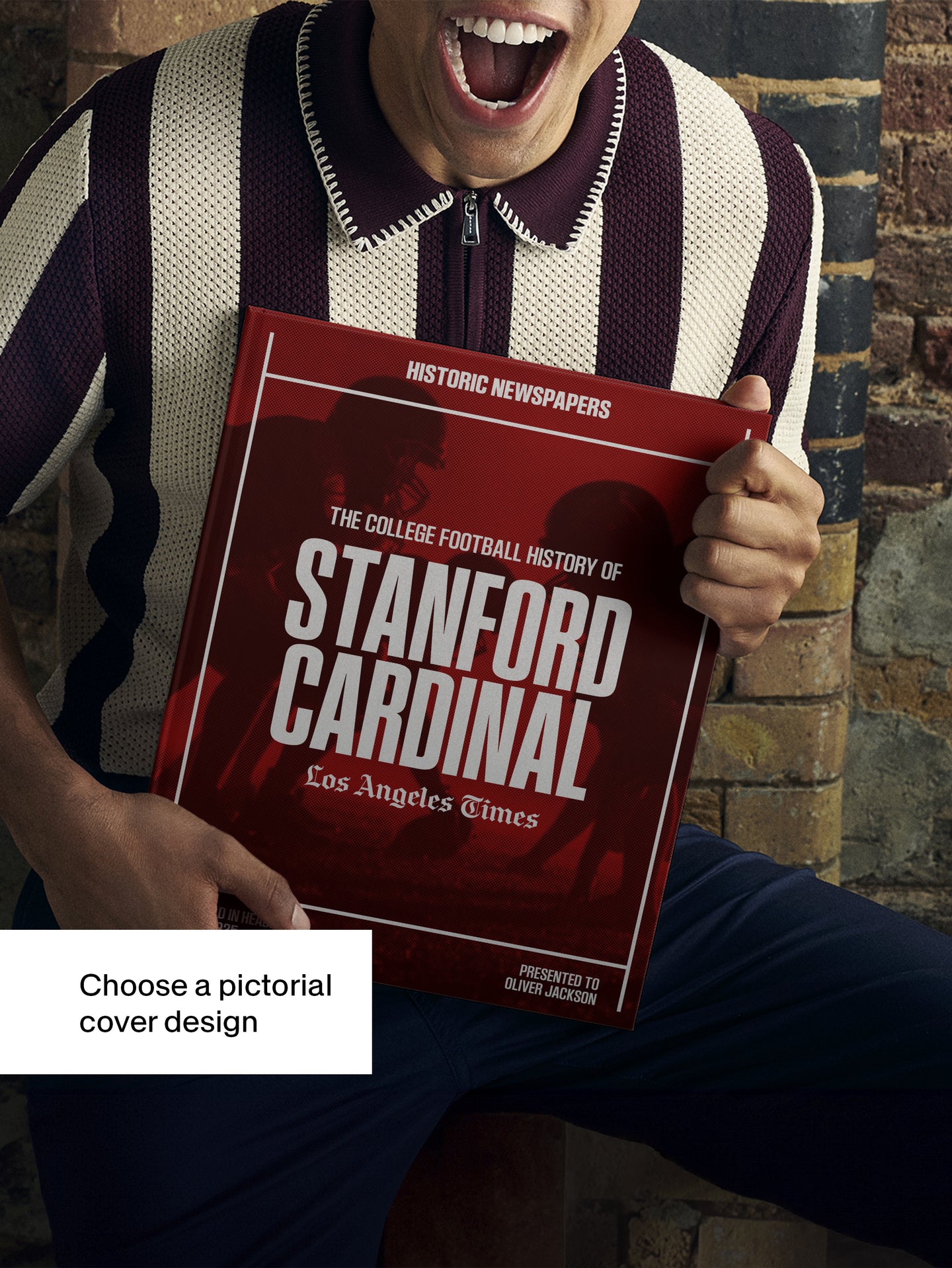 This coffee-table book features 150 pages of authentic Los Angeles Times newspaper reports about The History of Stanford Cardinal College Football. It comes with a choice of covers and the option to have the recipient’s name printed on the cover for free.