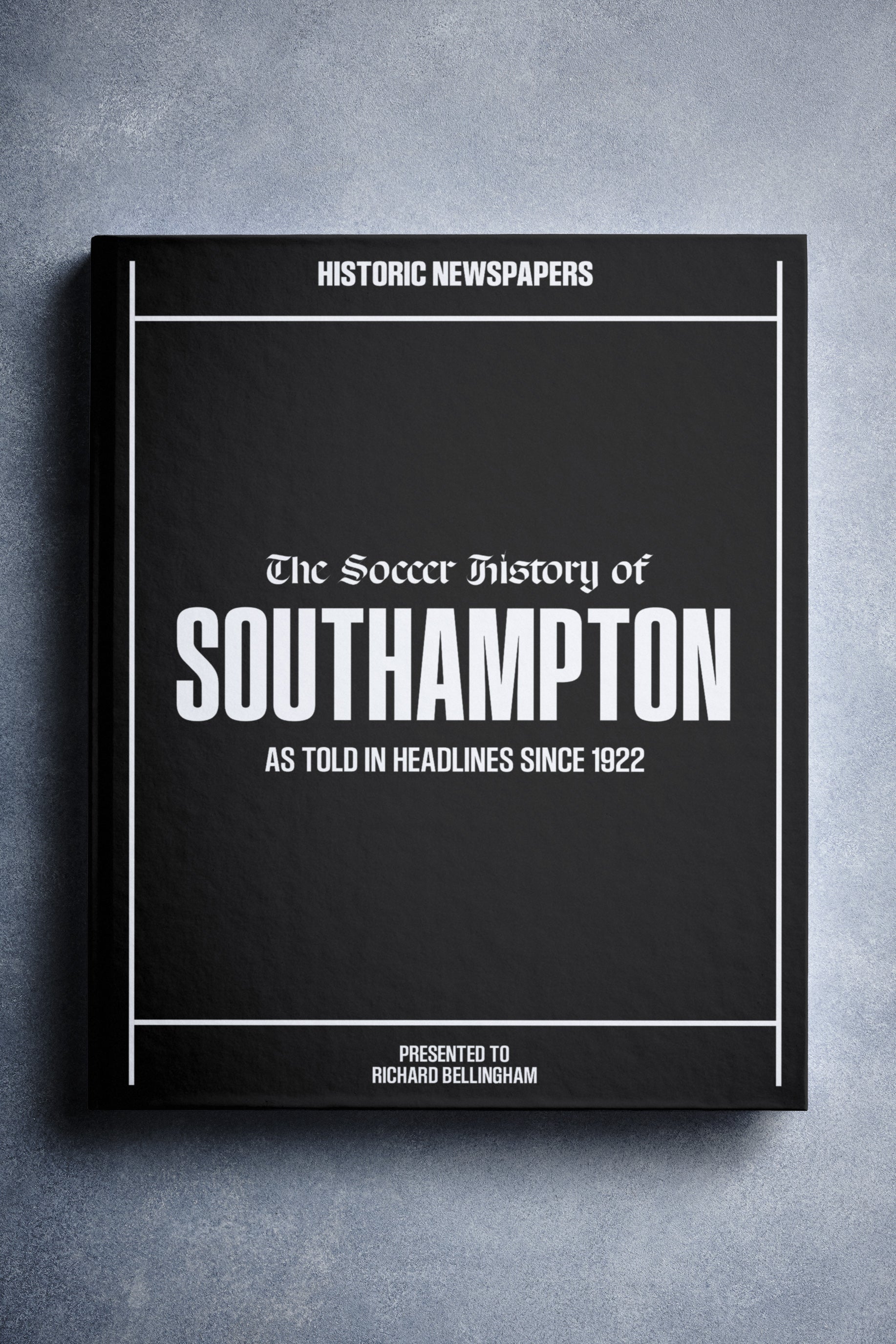 The personalized book features over 140 pages of authentic newspaper football reports about Southampton, from 1922 onwards.It comes with a choice of covers and the option to have the recipient’s name printed on the cover for free.