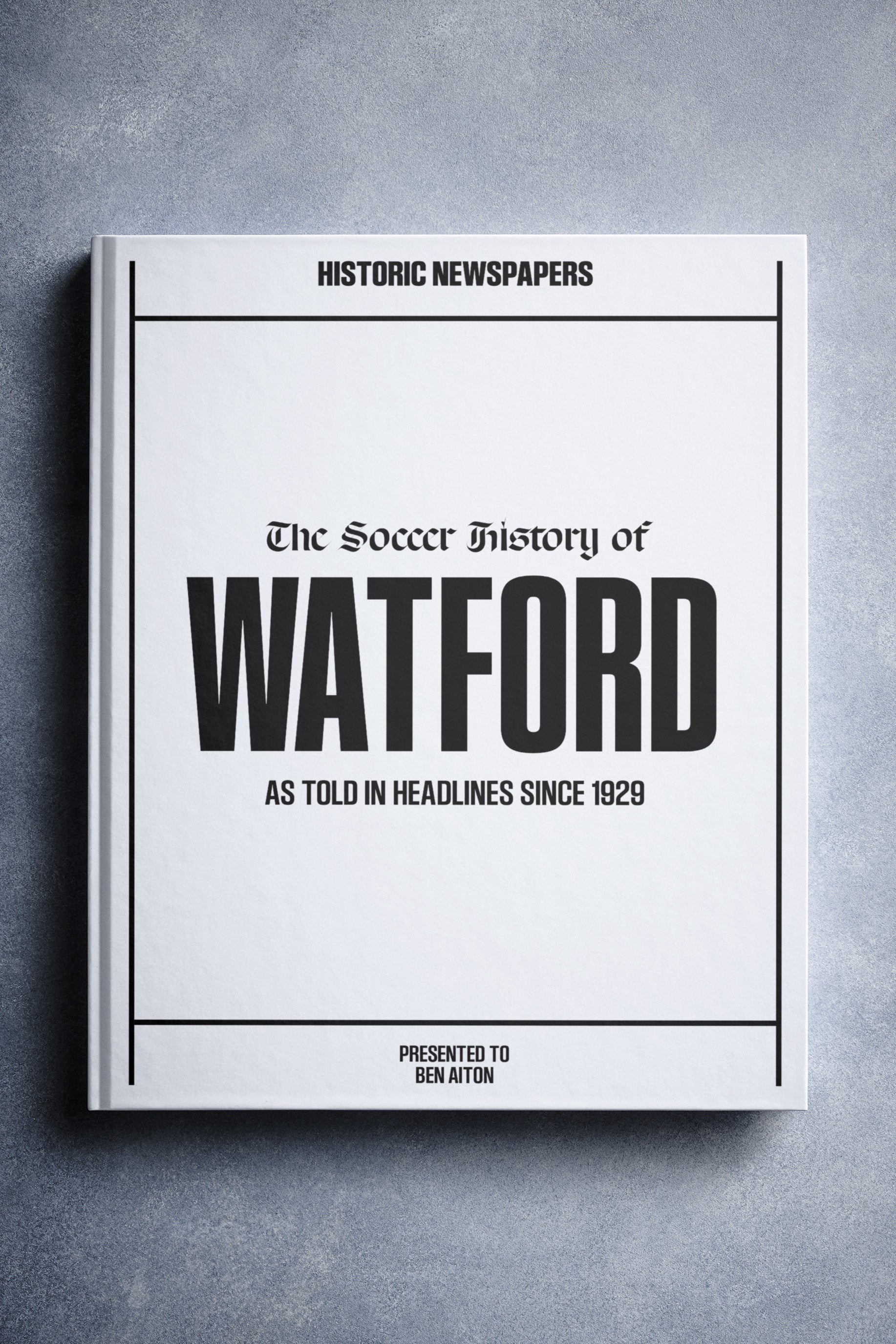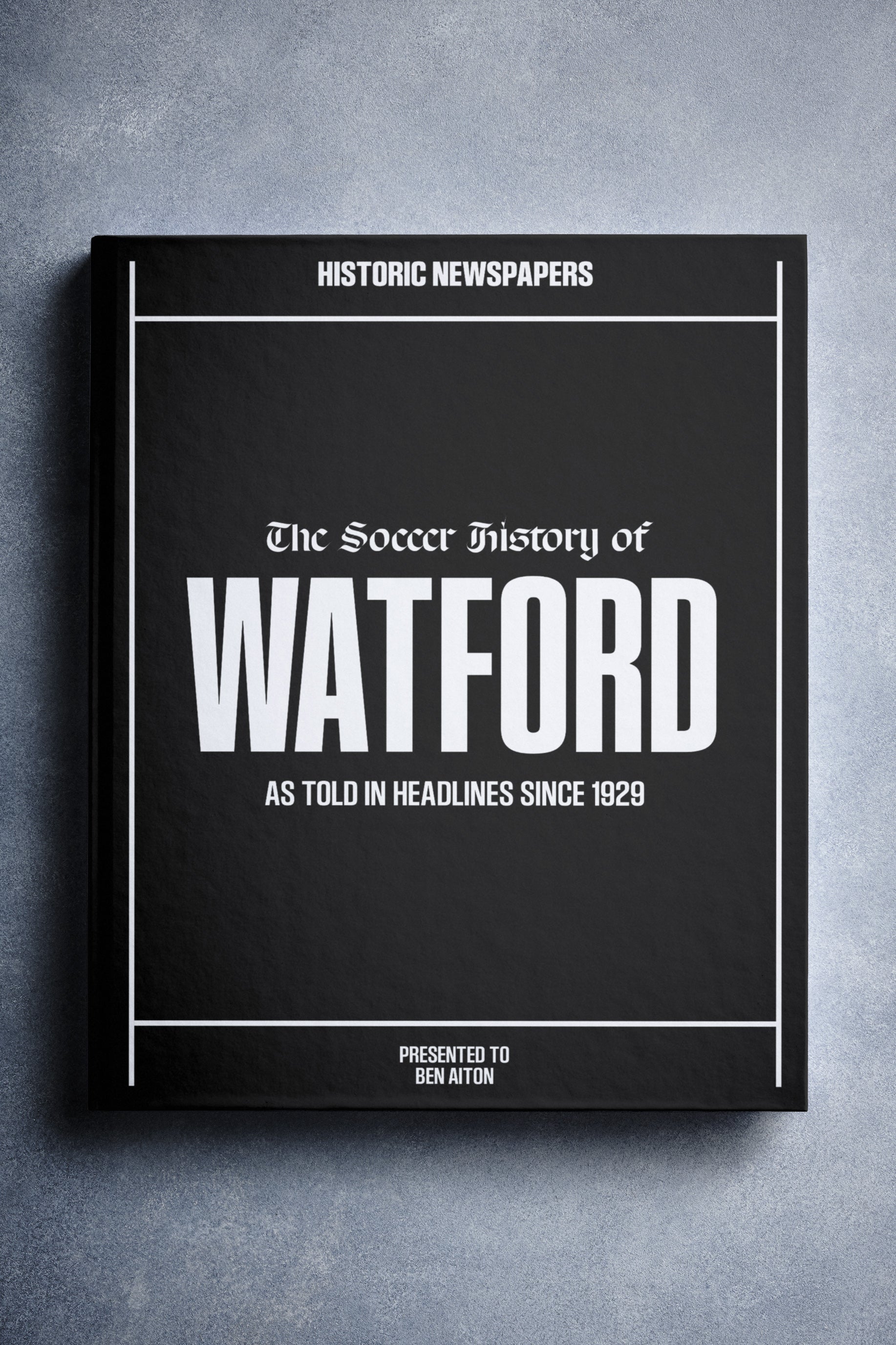 This personalized book features over 140 pages of authentic newspaper football reports about Watford, from 1929 onwards.It comes with a choice of covers and the option to have the recipient’s name printed on the cover for free.