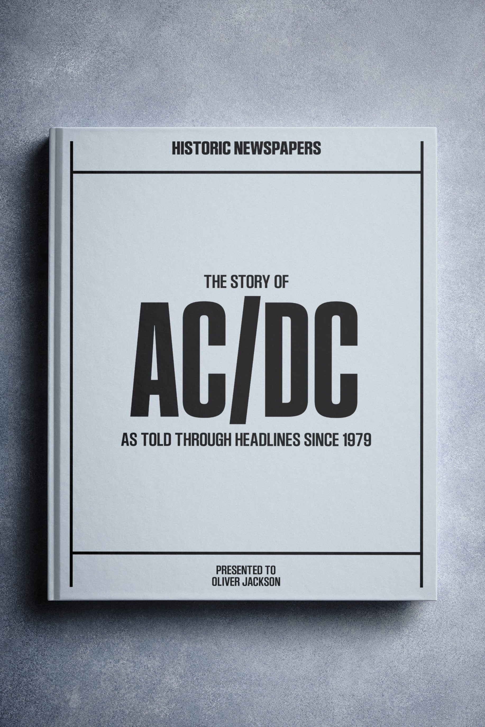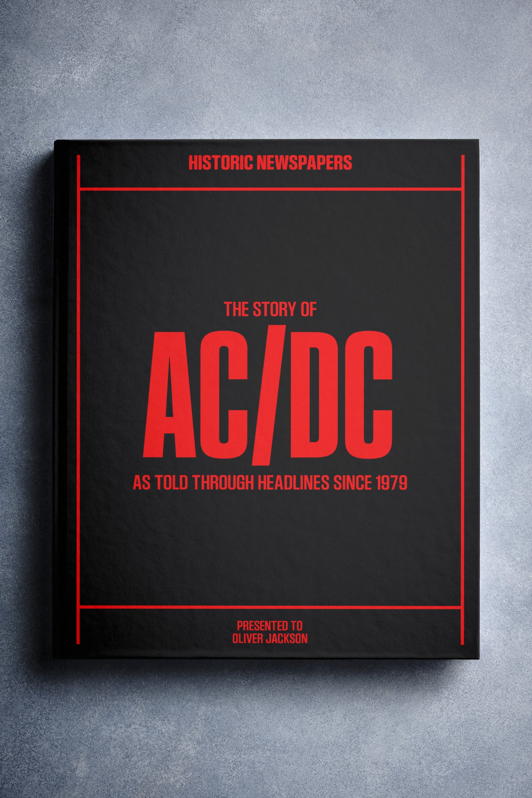 FOLLOW the story of AC/DC from 1979 onwards, told through original newspaper reports as they were published at the time. From the sad death of singer Bon Scott and the resulting ‘Back in Black’ album in 1981, band antics through the decades, the return to touring the USA in 2024. Choose from a range of book covers and personalize your book with a name and message to create a lasting keepsake. A piece of AC/DC history to gift, share, and relive.