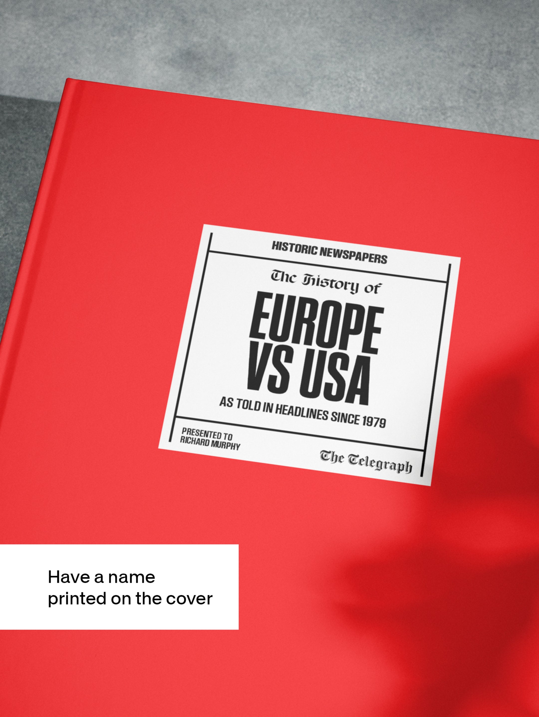 FOLLOW the story of Europe vs the USA – The Ryder Cup Tournament from 1979 onwards, told through original newspaper reports as they were published at the time. From when Europe succeeded Great Britain & Ireland as the USA’s opponents in 1979, all the way through to the most recent tournament where the USA’s fightback took it down to the wire. Choose from a range of book covers and personalize your book with a name and message to create a lasting keepsake. A piece of Golf history to gift, share, and relive.